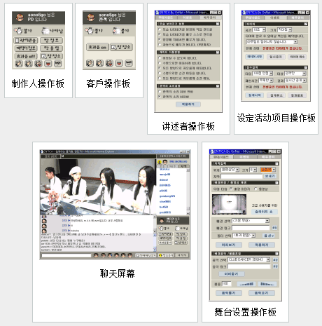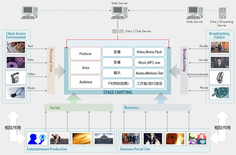 VOD・実況中継などリアルタイムで配信される映像、BGMを背景にユーザ同士がチャットできるブロードバンド型チャットソリューション。映像には動画、WEBプレゼンテーション、WEBカメラ、画像ファイル、リアルタイム放送などを自由自在に設定することができます。BGMはMP3ファイルを含めリアルタイムで選曲、配信ができます。