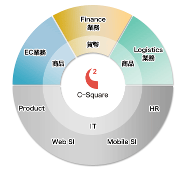 C-square是以網絡,手機的尖端技術作為基礎,隨著時代的轉變,如手機結構系統,CMS,CRM,EC等,以應用程序(Web Application)的開發為中心進行著SI業務。