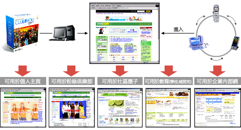 CLUB4Uは導入目的に合わせて、ポリシー・デザインを容易にカスタマイズすることができます。大手ポータルサイト、ファンクラブ、学内コミュニティ、社内イントラネットなどなどCLUB4Uは多様な分野において実績を積んでおります。
