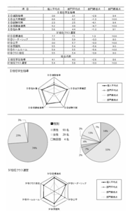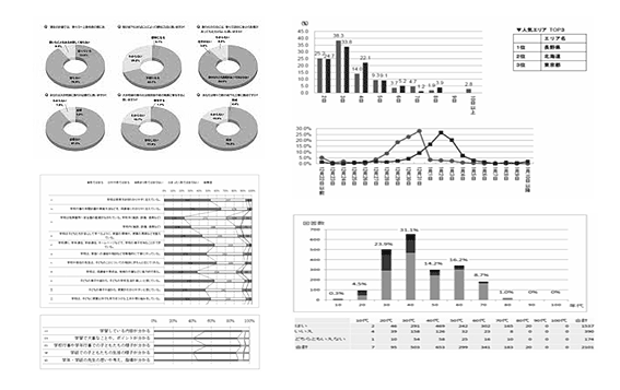 - 回答結果的自動合計和男女性別,其他提問的交叉統計